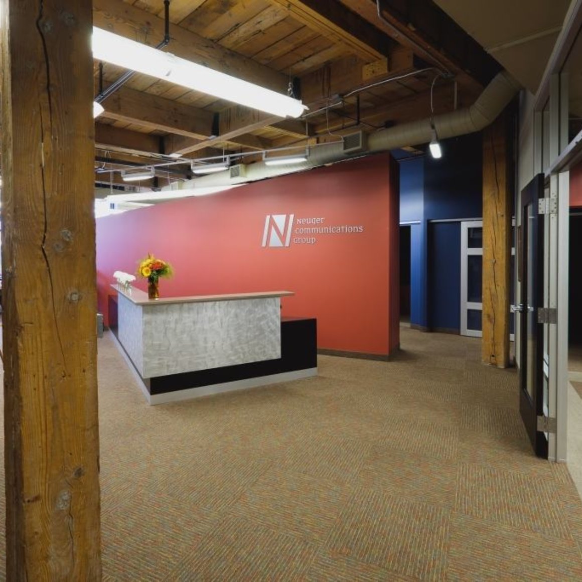 For the company’s new office space in the North Loop neighborhood of Minneapolis, marketing communications firm Neuger Communications Group chose to work with Sullivan|Day Construction and Krech, O’Brien Mueller & Associates (KOMA). The goal was to design and build a fresh space that strongly reflected the company’s visual brand, reinforced the look of their corporate headquarters and also remained true to the creative North Loop culture.
